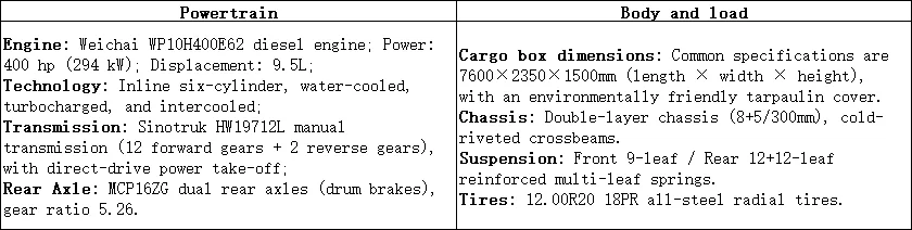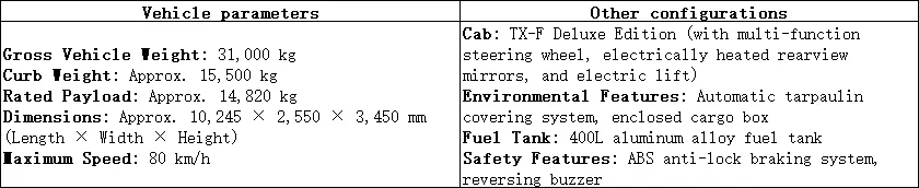 Le camion-benne pour déchets de construction Howo TX 8×4 (version verte et respectueuse de l'environnement) est un camion-benne spécial pour le transport des déchets de construction, répondant aux exigences en matière de transport des déchets de construction respectueux de l'environnement.